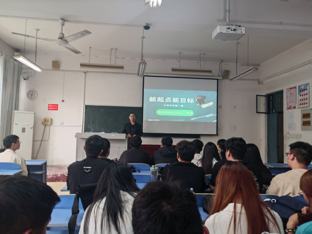 为加强对新生的思想政治教育,厚植学生爱党爱国爱校情怀,9月27日,商学院党总支书记郭强在A11—106为2023级专升本知识产权1班的学生讲授开学第一课。
