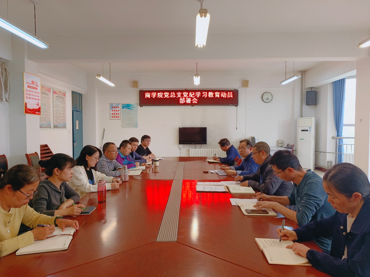 4月16日下午,商学院党总支在A11-319会议室召开党纪学习教育动员部署会。党总支书记郭强主持会议,学院领导班子及各支部书记参加会议。