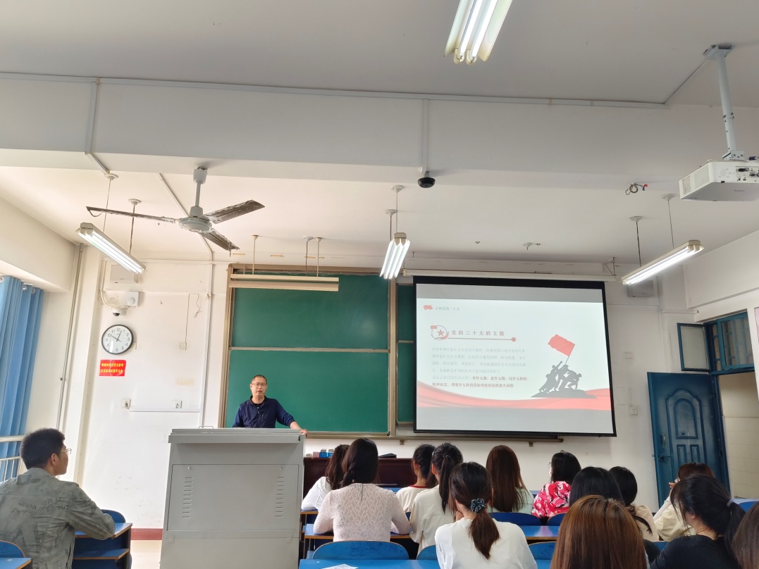 为培养学生激扬青春、踔厉奋发精神,4月26日上午商学院党总支书记郭强在A11—407为2022级工商管理1班的学生讲授思政课。