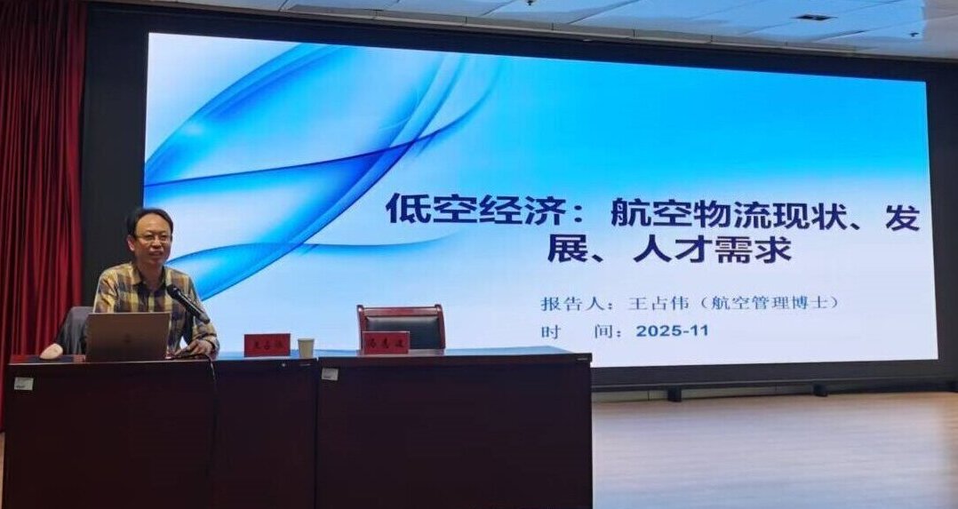 2025年11月27日下午,在安阳工学院艺术楼二楼学术报告厅,山东航空学院王占伟博士为商学院师生作了一场题为“低空经济:航空物流现状、发展、人才需求”的学术报告。报告会由商学院副院长冯志波主持,商学院师生150余人参加。